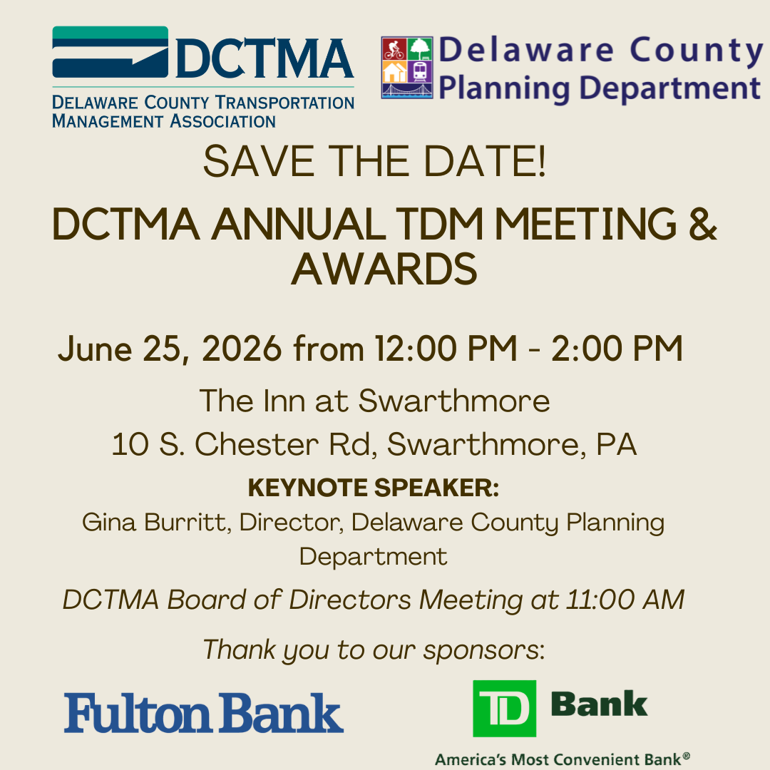 Thank you to everyone who attended the DCTMA’s Annual TDM Meeting on Wednesday, June 22, 2022. Thank you to our Speaker, Scott Sauer, Chief Operating Officer, SEPTA. We were provided with an update on the SEPTA WAWA Regional Rail Station, which is set to open in August! We were also provided with many other important SEPTA updates. Stay tuned for information in our weekly TDM alerts, and on our social media pages for details.