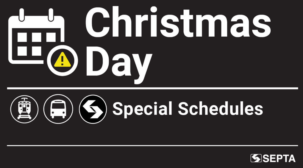 All Regional Rail lines operate on special Christmas schedules, see specific changes for each line below. There will be no service on the Cynwyd Line.